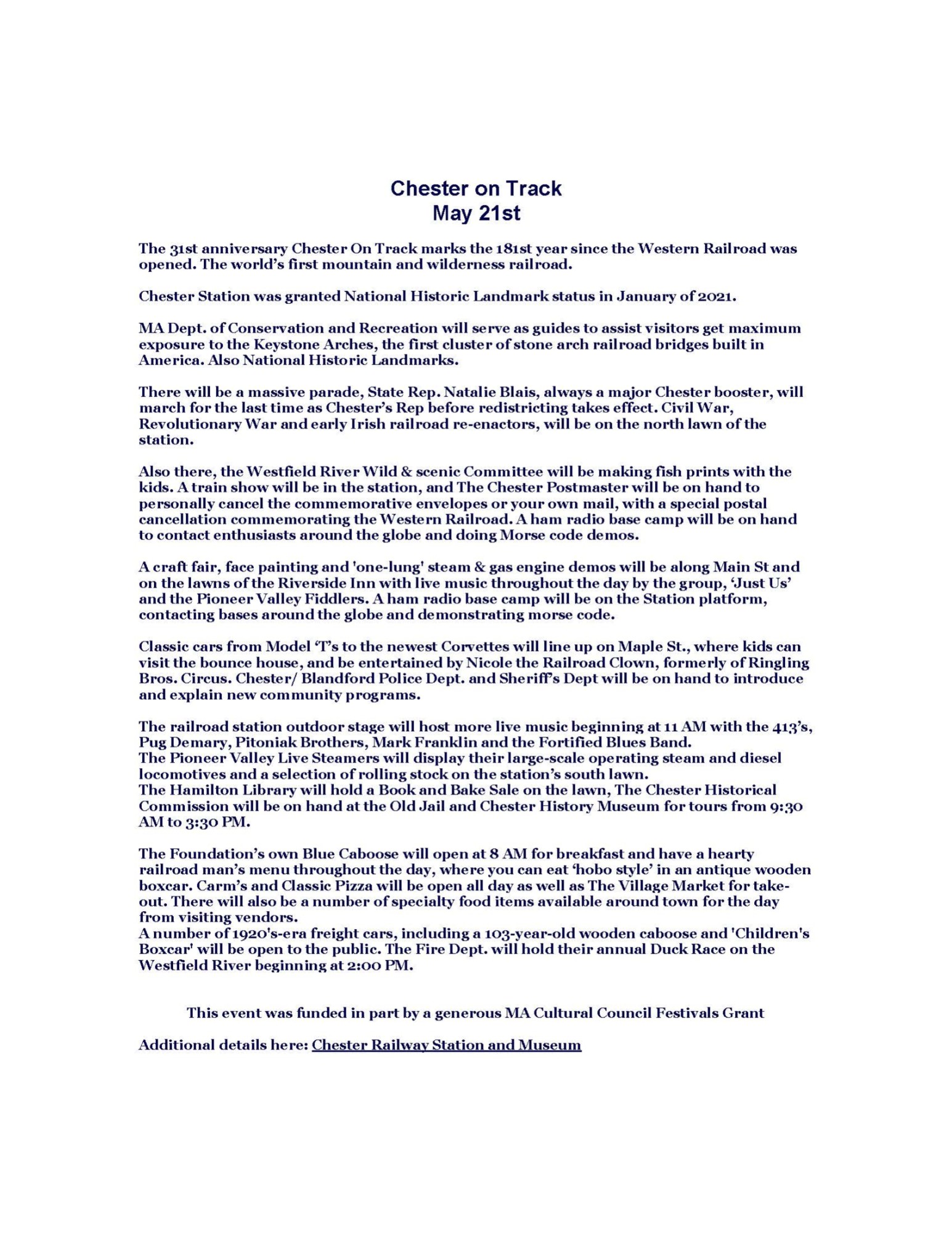 SUMMARY:Chester On Track