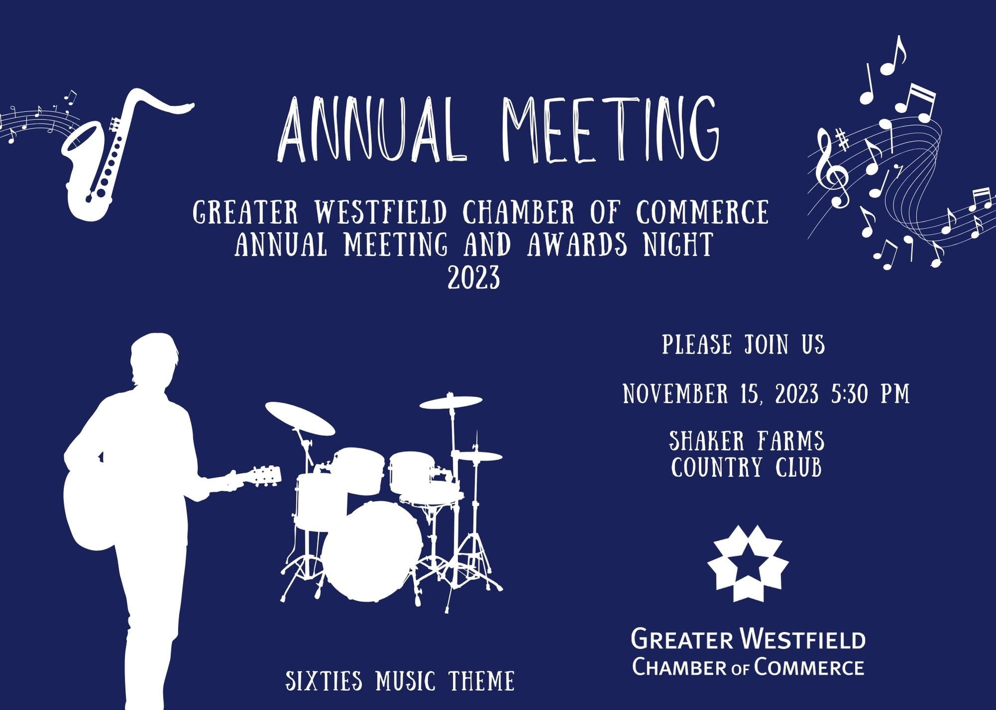 The Chamber's 2023 Annual Meeting will be held on Wednesday, November 15 at Shaker Farms Country Club at 5:30. We will look at our year in review and will also celebrate our annual award winners! Our keynote speaker that evening will be Christine O'Dea, VP Business & Government Deposit Services of Westfield Bank. Sign up now for this fun-filled evening.